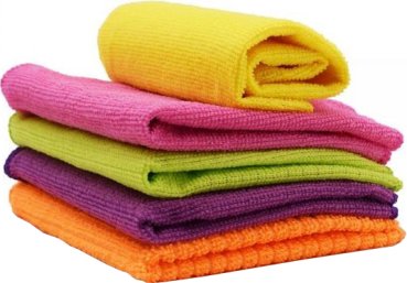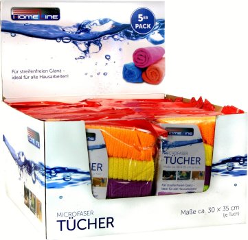 Mikrofasertücher 5er Pack farbig sort. in Polybag mit Sichtfenster ca. 30x35cm in 24er T-Dsp. (Orange, Pink, Lila, Gelb, Hellgrün)(104473)