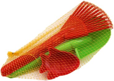 Sandspielzeug 3-tlg. "Bunt XL" in Netzbeutel (Hake, Schaufel, Sandförmchen)