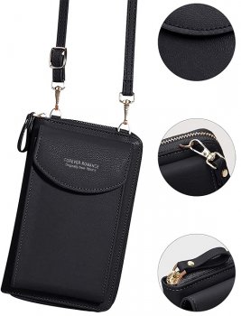 Handy Umhängetasche mit Geldbörse 8/s ca. 18 x 11 x 4,5cm (apricot, schwarz, blaugrau, rosé, rot, grau, goldbraun, braun)