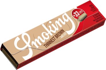 Smoking Pure Thinnest Brown King Size + Tips Unbleached 24 Heftchen a 33 Blatt + 33 Filter Tips 108x44mm im 24er T-Dsp.